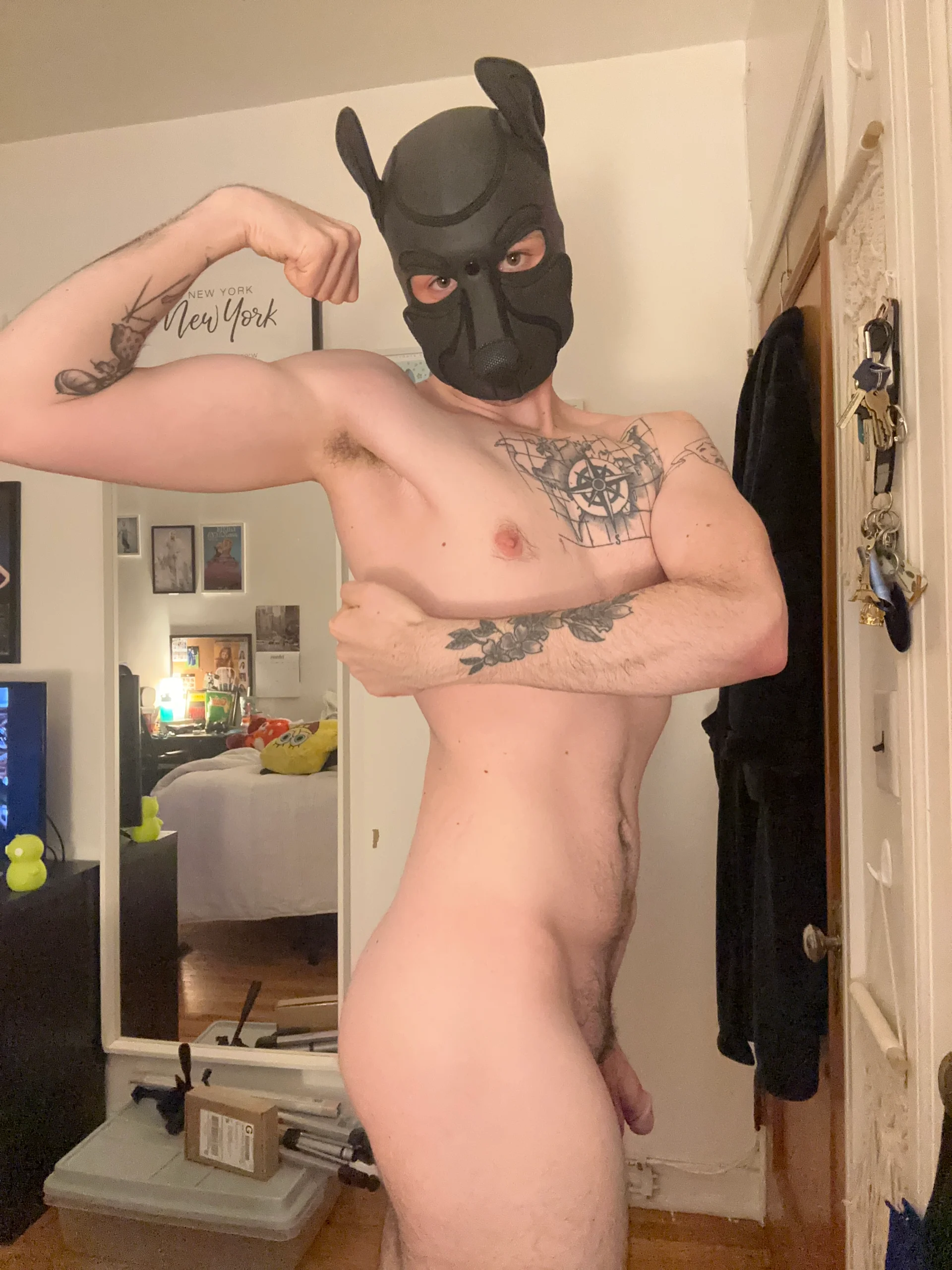 That’s a good question! To me, being a pup is my favorite thing in the world, I love being a good boy! And wearing my hood makes me feel even sexier! So while you won’t see my face, I’ll happily show you all other parts of me ;)