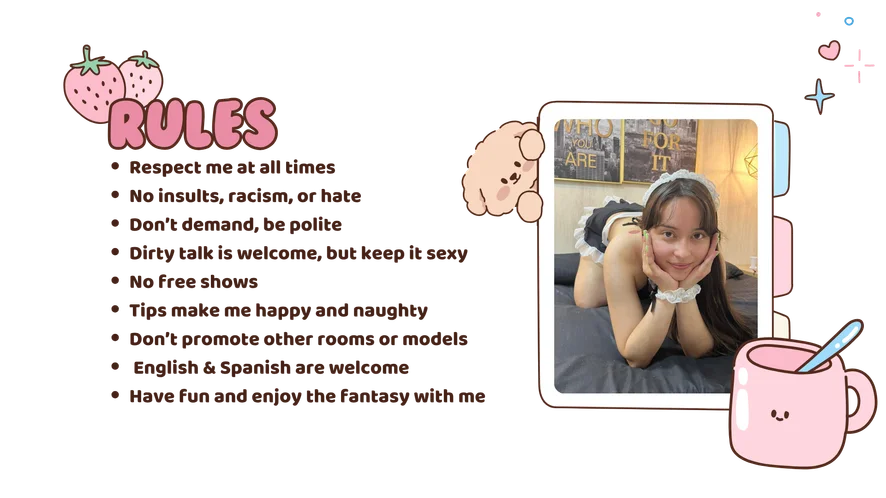 Twerk, Topless, Flashing, Camel Toe, Evaluare Penisuri, Dans Erotic, Fumat, Plesnire, Ahegao, Felație, Pe la spate, Masturbare, Orgasm, Striptease, Discutii murdare, Masturbare cu degetele, Sex între sâni, Sex oral in adancime, Jucării pentru sfârcuri, Hardcore, Joc de rol, Dildo sau Vibrator, Anal, Fetis Picioare, Jucării Anale, Improscare, Cowgirl, Fisting, Umilire, Jucarii Sexuale, Instrucțiuni pentru masturbare, Spectacol cu ulei